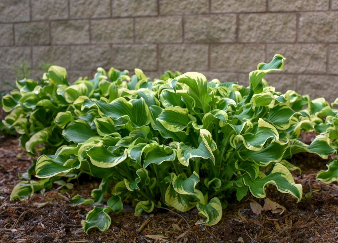 If your foundation is shaded for part or much of the day, hostas are an easy solution. They come in many sizes, from the giant ‘Empress Wu’ hosta to miniature varieties like ‘Mini Skirt’ and every other size in between. ‘Wheee!’ is a distinctive, medium-sized, variegated hosta that grows 11-18” tall and matures to 28-30” across.