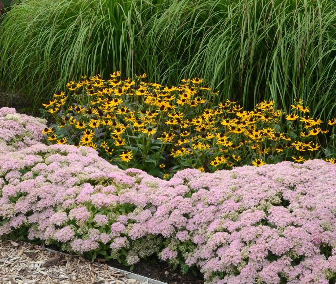 It’s hard to imagine an easier perennial to grow than this little cutie. It forms a perfect dome-shaped mound that hugs the ground, reaching just 10-12” in tall in full bloom. That makes it a perfect choice for growing along the edge of your foundation bed in front of taller roses or evergreens. It will look its best if you grow it in full sun and drier soil with no extra fertilizer needed. Too much love makes sedum’s stems weaker, so just plant it and forget it. Bonus: Light pink flowers which pollinators adore completely cover the succulent green foliage in late summer. Perennial in zones 3-9.