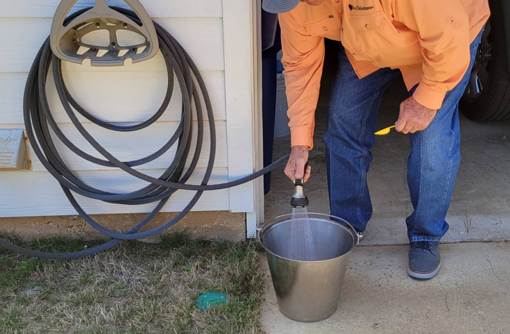 Performing the soap flush test is a fairly simple process that takes only 5–10 minutes. The most common techniques for applying the soap solution include using a watering can, a hose-end sprayer, or a small container such as a bucket. The following steps include the instructions for preparation as well as the procedure for application.