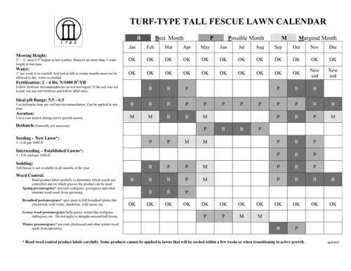 FESCUE LAWN CARE CALENDAR