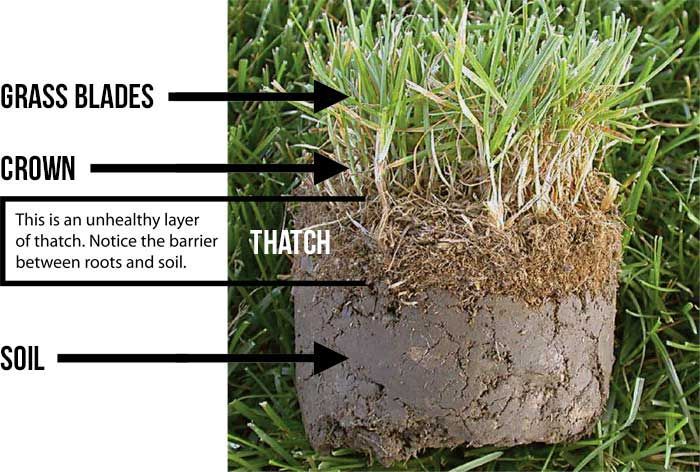 While some thatch is desirable in your lawn, too much can result in some serious problems. Thick thatch layers can cause extensive root damage and wet thatch holds too much water during rainy periods, which results in root rot. Also, another concern of thatch build-up is that it could potentially harbor large populations of disease-causing organisms and insects. Core aeration is very beneficial to the overall heath of your lawn, because the plugs of soil deposited on your lawn's surface help decompose thatch.