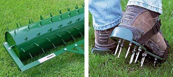 There are two types of aerators: core and spike. Core aerators have hollow tines called “spoons” that plunge into the ground and pull up large plugs of earth as the machine travels across your lawn. Spike aerators insert narrow, solid rods into the earth. University of Georgia turf expert, Dr. Robert Carrow, compared the effects of aerating with a core aerator versus a spike aerator and concluded that core aerators increased deep rooting and water extraction by 25 percent, whereas spike aerators showed no effects on grass health. Further, walking around on a lawn with spike aerator "shoes" may be great exercise, but this type of aeration adds very little benefit to your lawn.