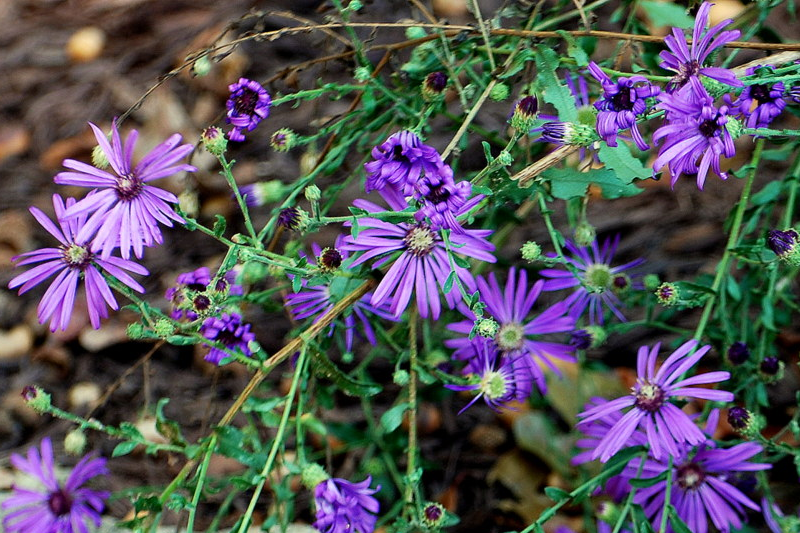 This late-blooming native aster offers striking deep purple flowers that bloom in mid to late spring. It grows well in full sun to partial shade and helps support native bees.