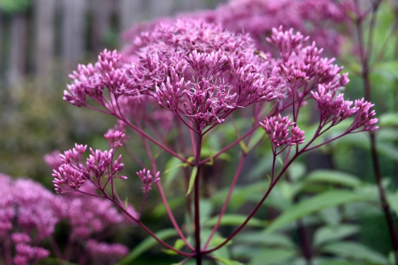 If you’ve got space for a tall stunner, Joe Pye Weed brings height and butterfly appeal to your garden with large pink flower clusters. It prefers moist soils and partial sun.